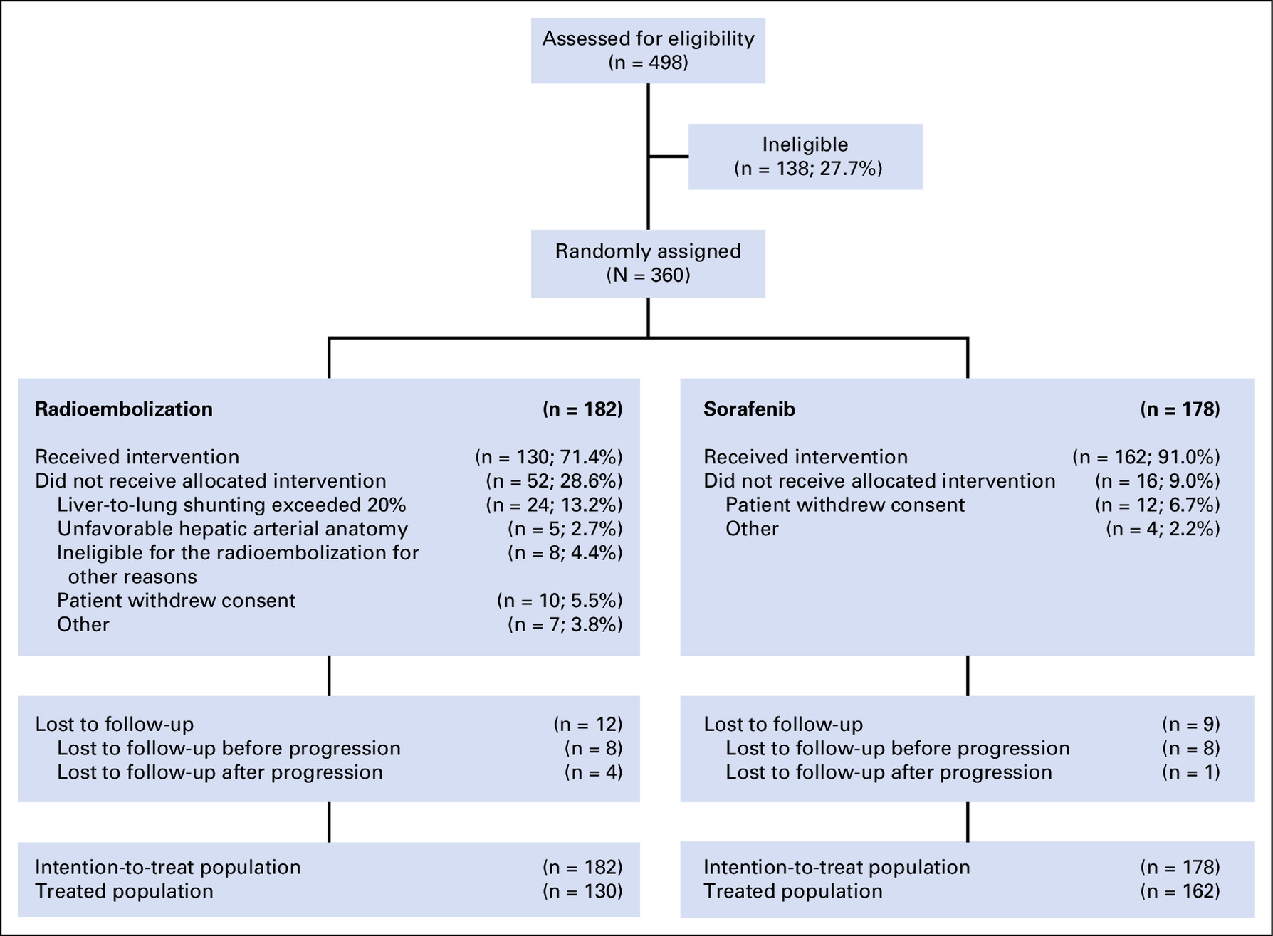 No significant difference in overall survival (8.8 months for Y90 vs. 10.0 months for sorafenib)